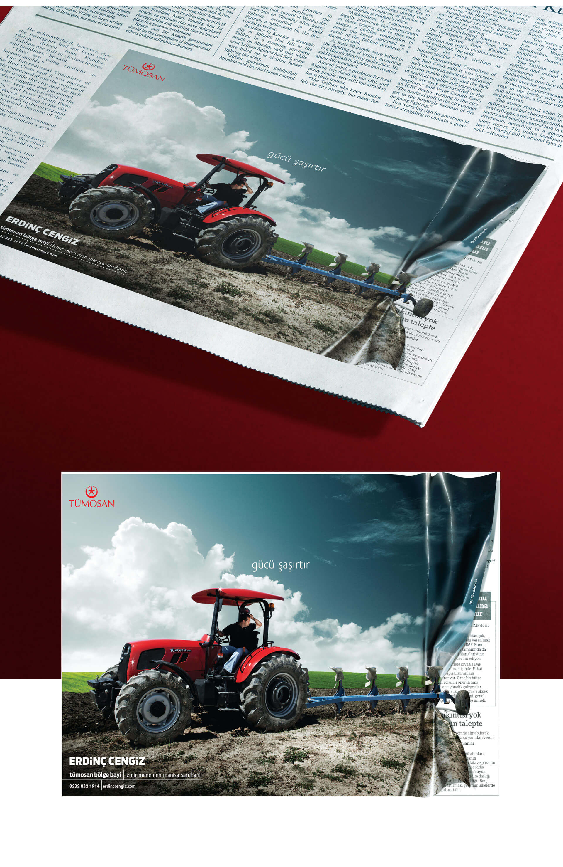 traktörün gücünü betimleyerek mecraya uygun